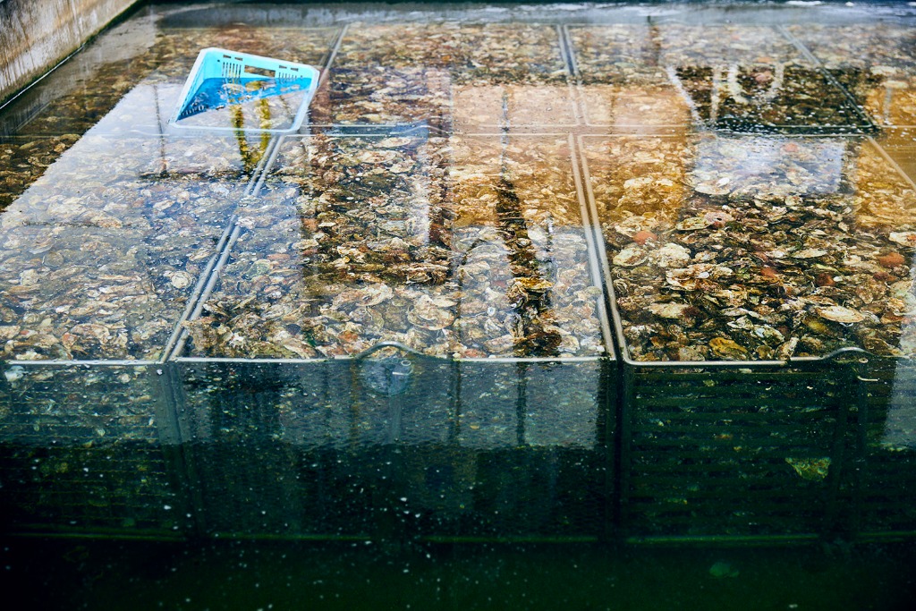 この中で牡蠣を飼育することによって、約8~12時間で内臓の汚れや細菌を全て吐き出します。